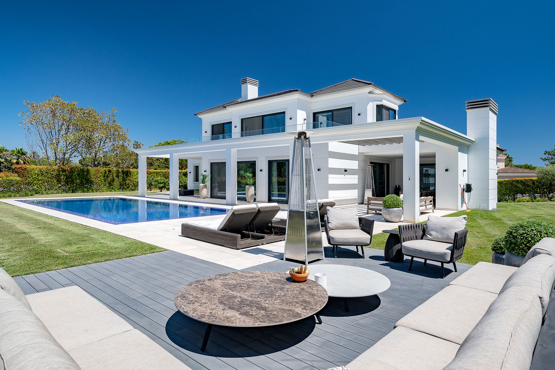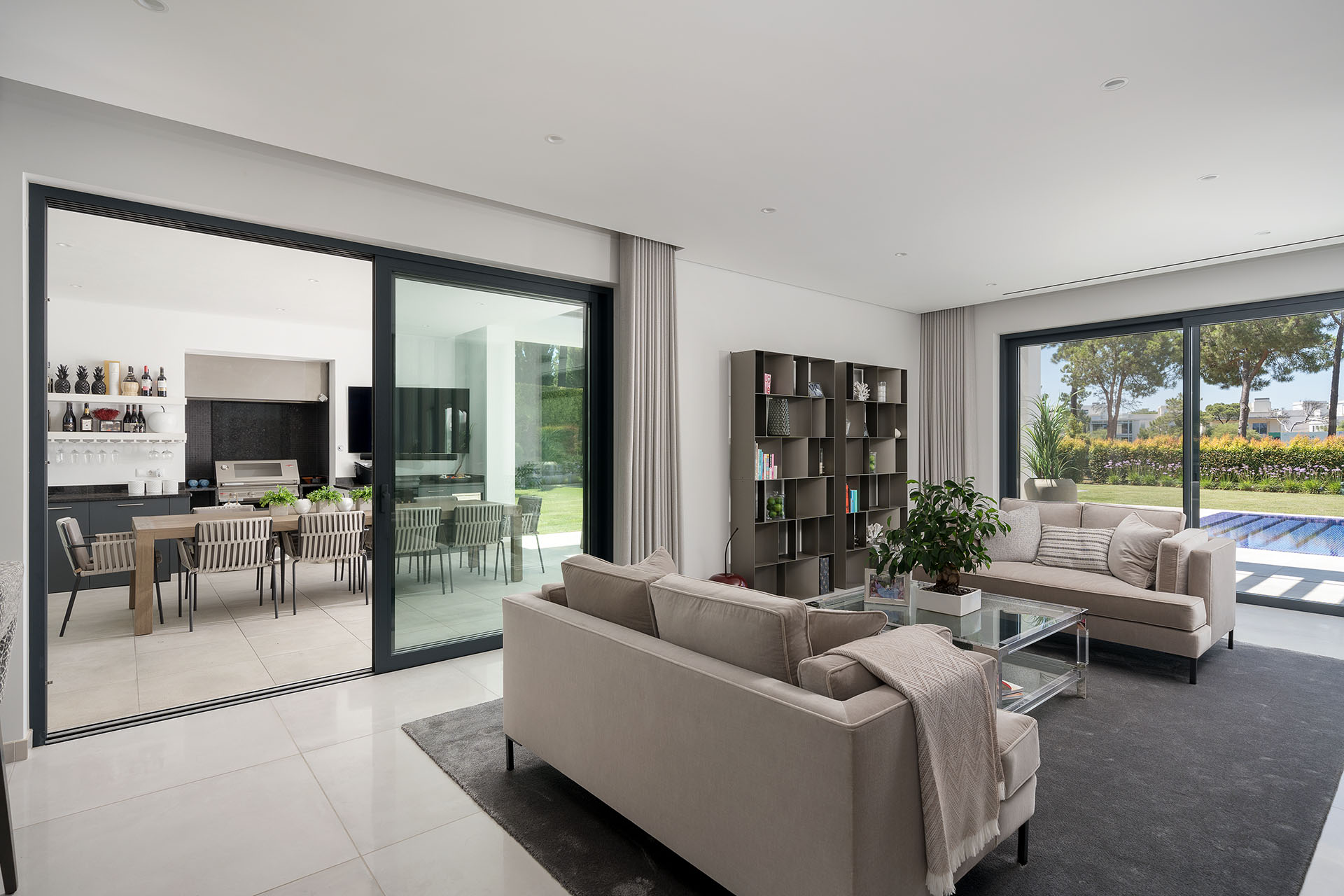 Set within landscaped gardens, the exterior offers a heated swimming pool, expansive covered terraces, and a barbecue area for year-round outdoor living. A private putting green further embraces the villa’s frontline golf position.