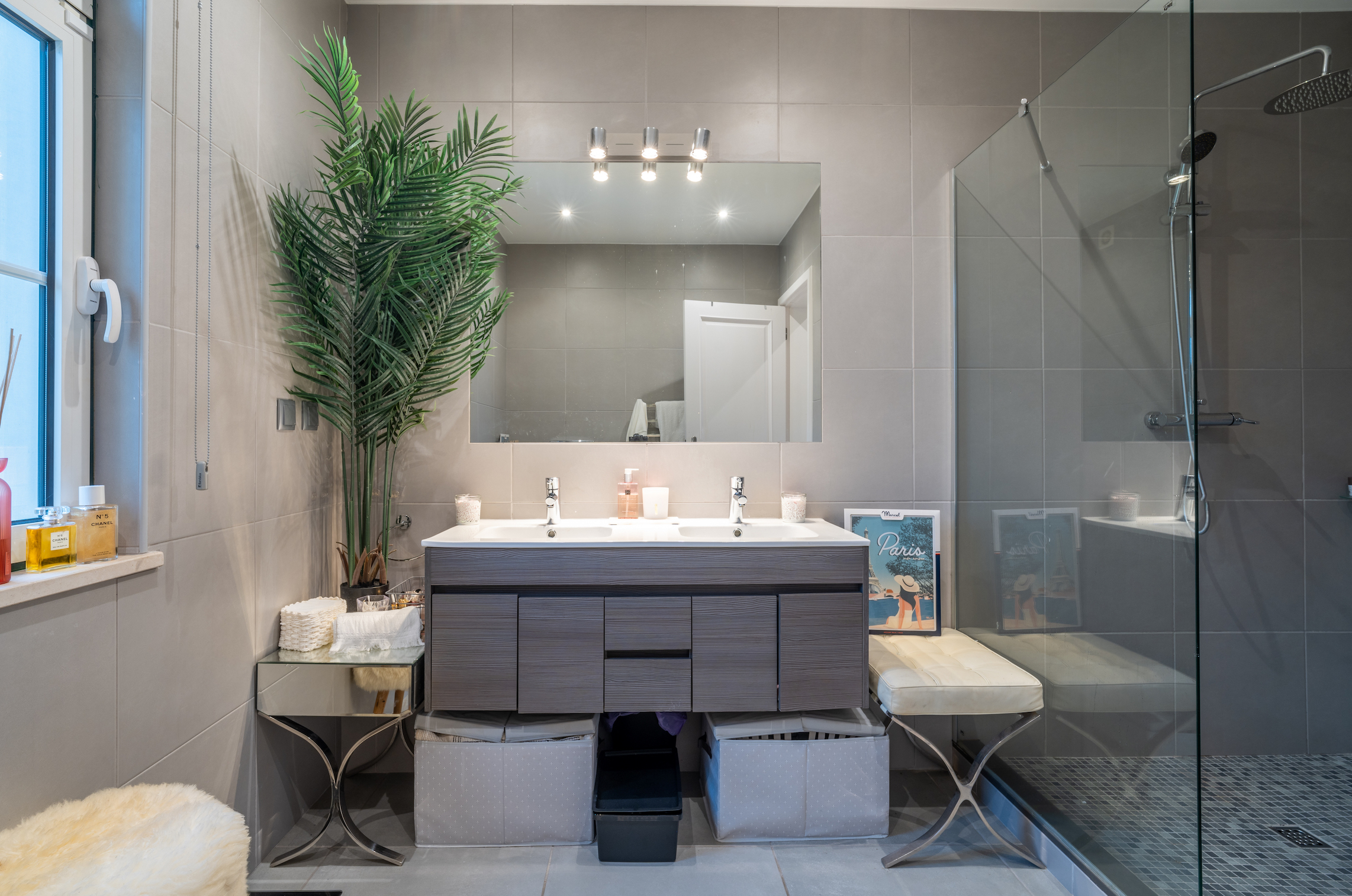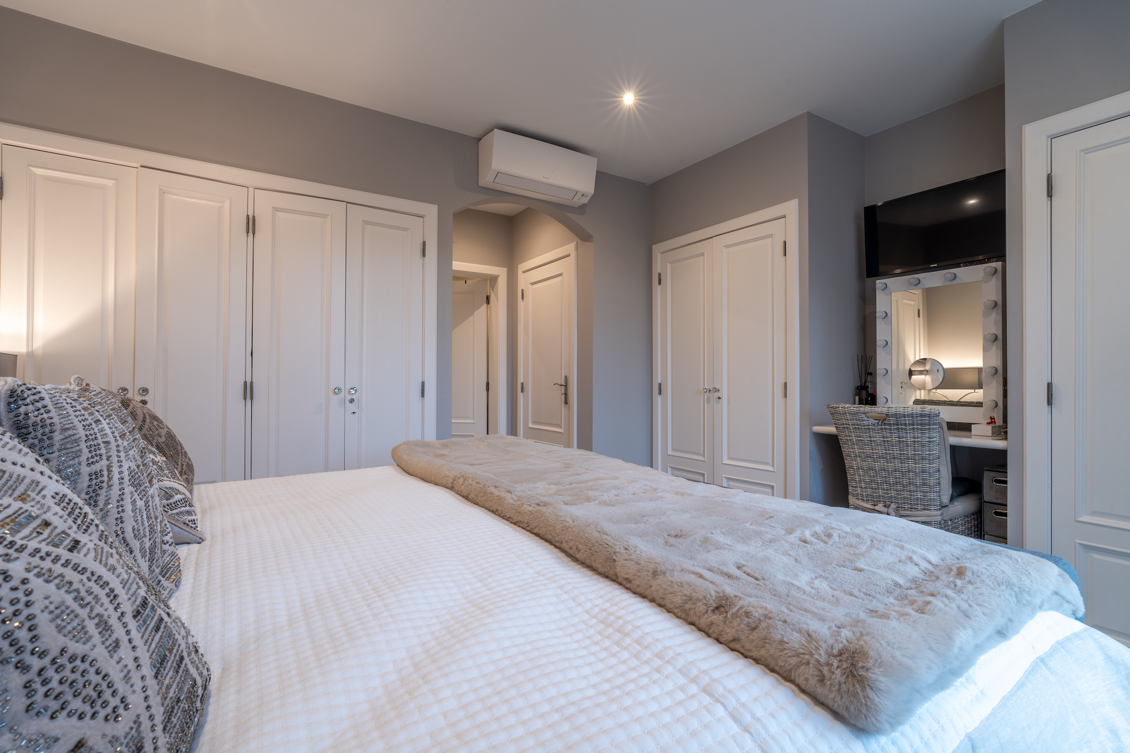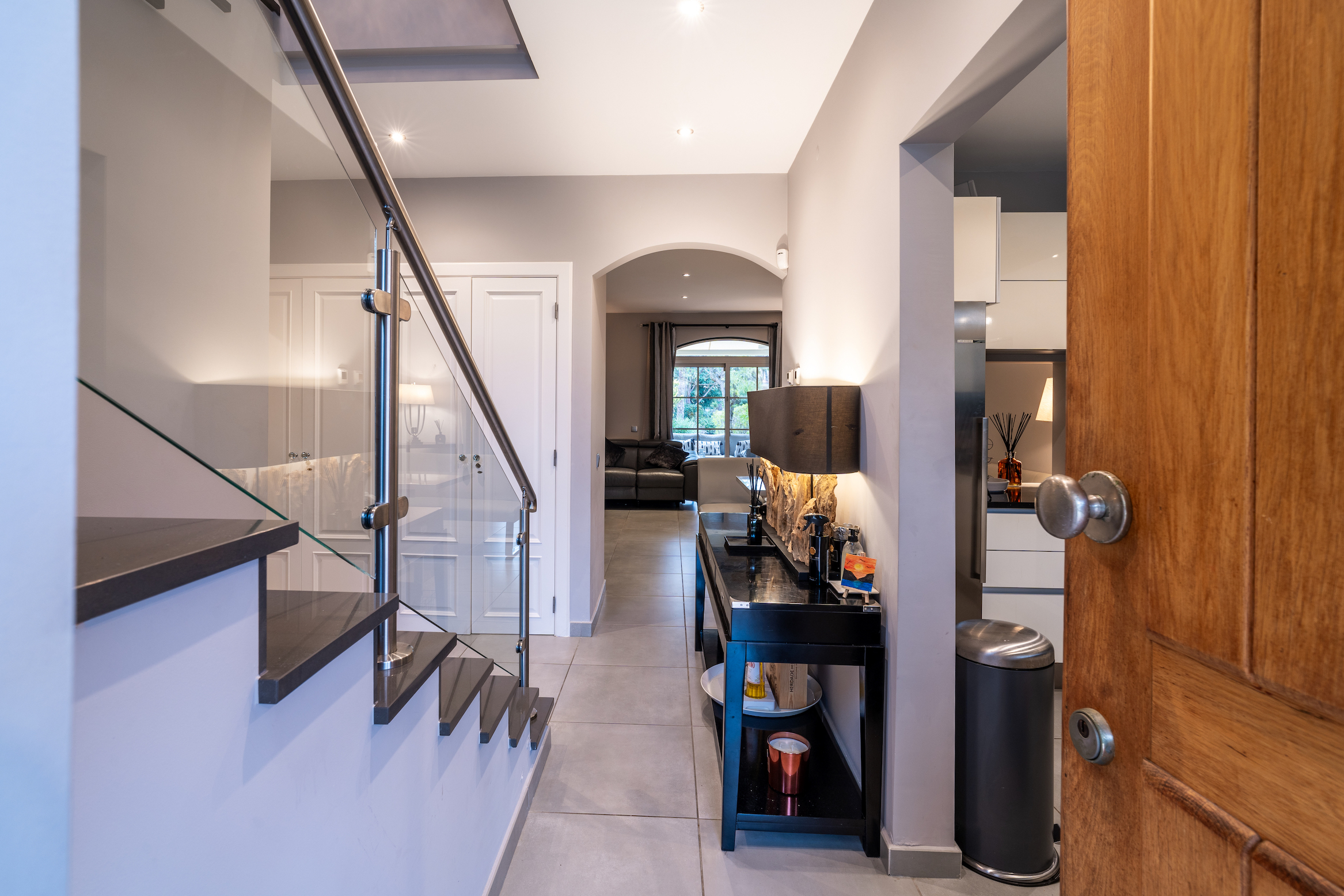 Upstairs, the master suite boasts a double bed and en-suite with a bath, while a twin bedroom features its own en-suite bathroom. Both bedrooms offer verandas for to enjoy the sun.